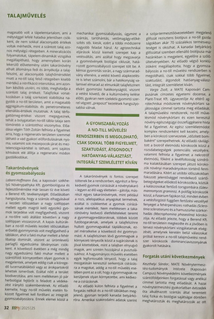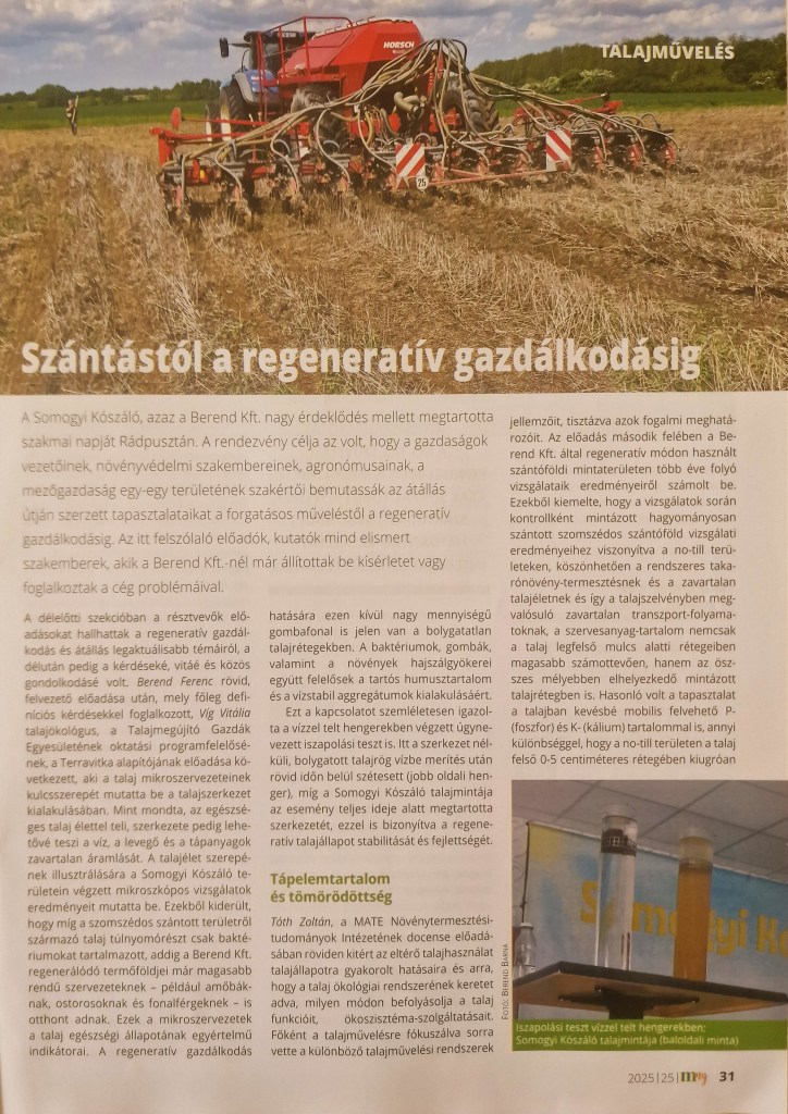 Legutóbbi eseményünkről, a Szántástól a regeneratív gazdálkodásig c. szakmai napunkról készült beszámolót a képekre kattintva olvashatjátok (Megjelent a Magyar Mezőgazdaság 25. számában, 80. évfolyam, 2025. június 18.)